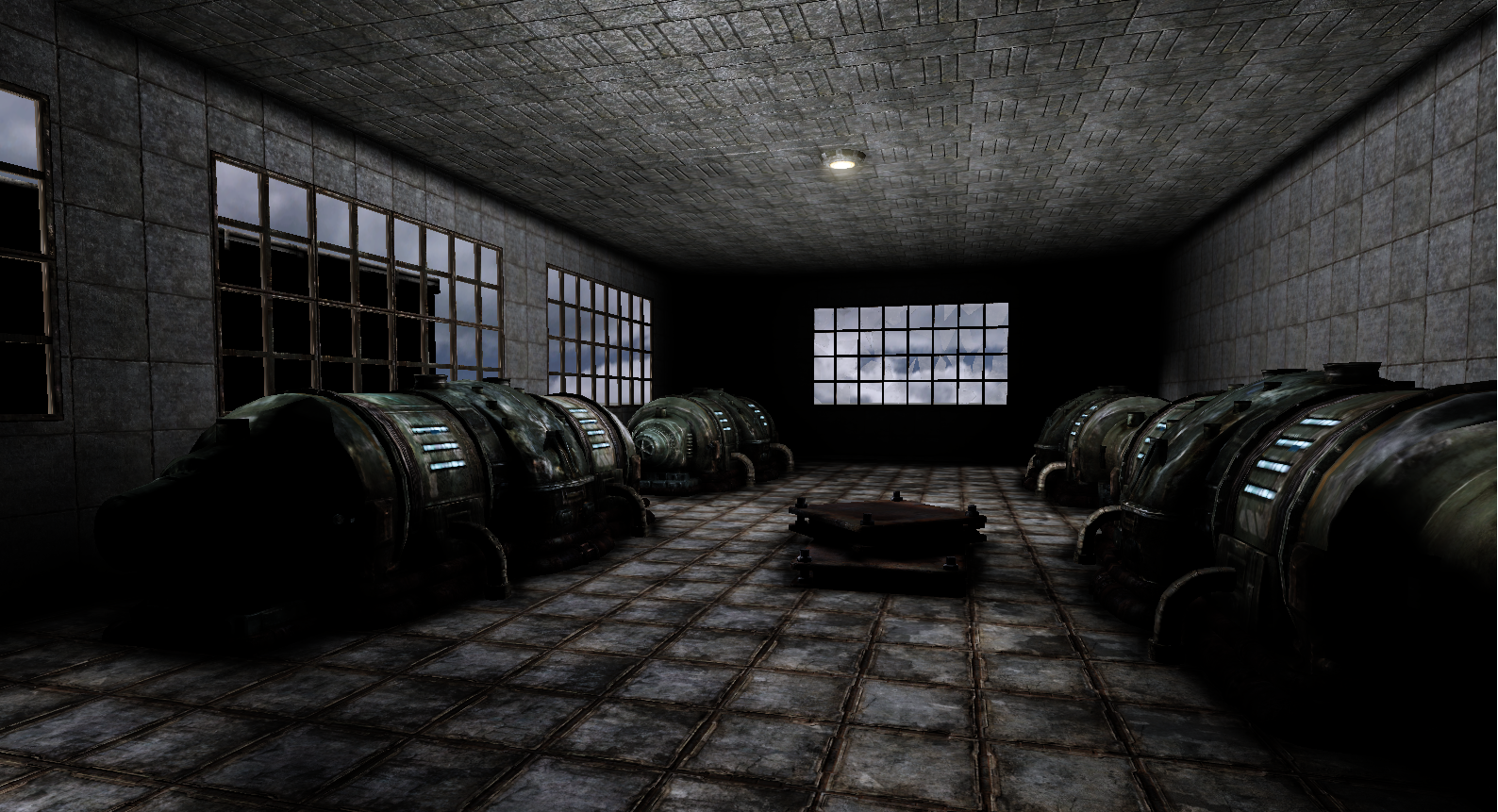 Since Saturday I've furnished the long, dark room, but I couldn't be bothered building lighting for static meshes afterwards because it would take ages and I want to play Crysis. Which is also why I'm writing this pretty quickly. I changed the lighting a bit in the room that was really dark because it seems some people can't take a little spookiness! No, but seriously, I added a light in the ceiling, mainly because it'd be silly if it was the only place that didn't have any.